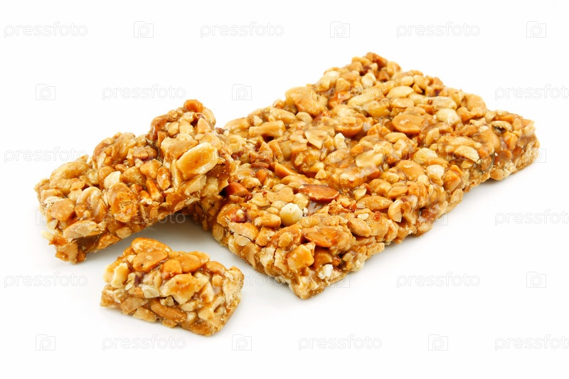 Бар орехов и меда, изолированный на белом фоне