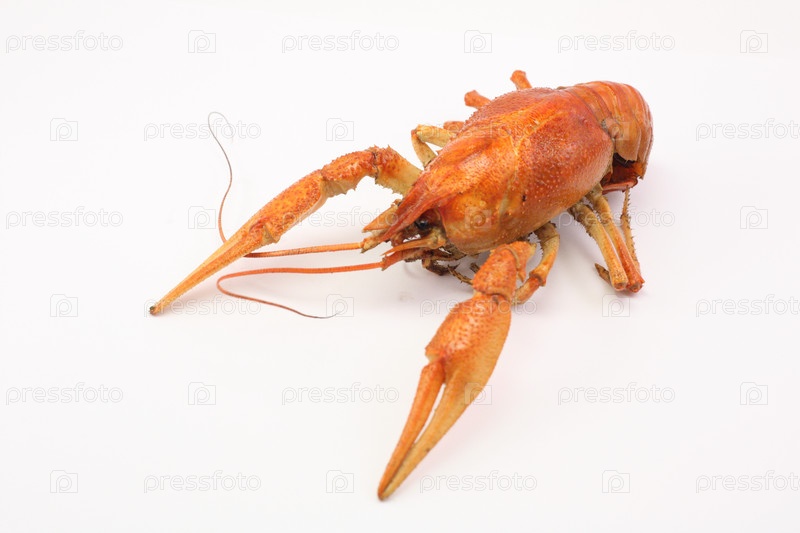 Красные, вкусные вареные крабы лежат на белом фоне