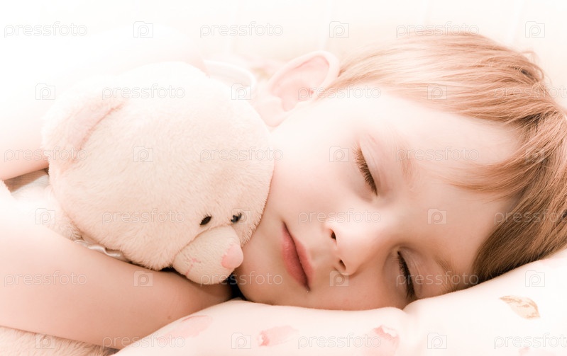 Спящий мальчик с плюшевым мишкой