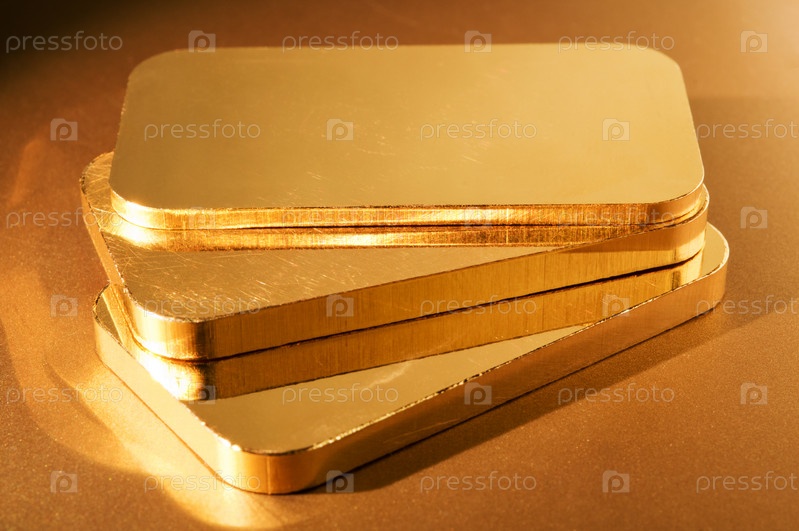 Три золотых слитка на золотом фоне