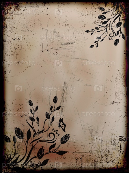 Гранж сгоревший цветочный фон с бабочками