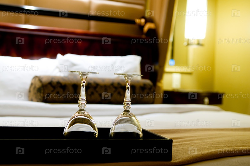 Два бокала на двуспальной кровати