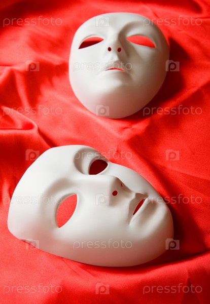Две маски на алом фоне