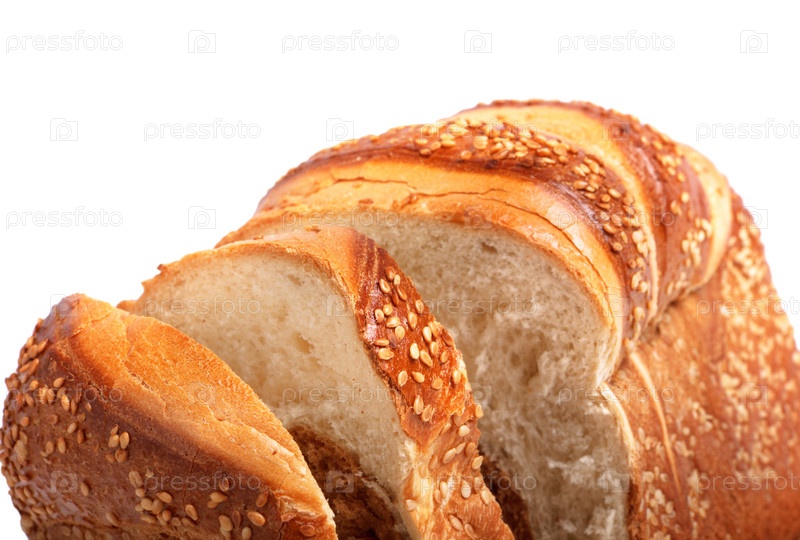 Нарезанный хлеб с кунжутом на белом фоне