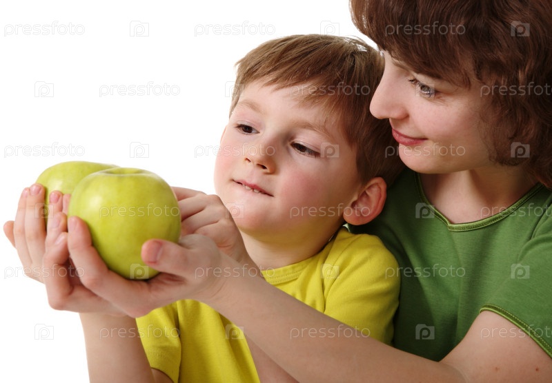 Мать дает сыну яблоко