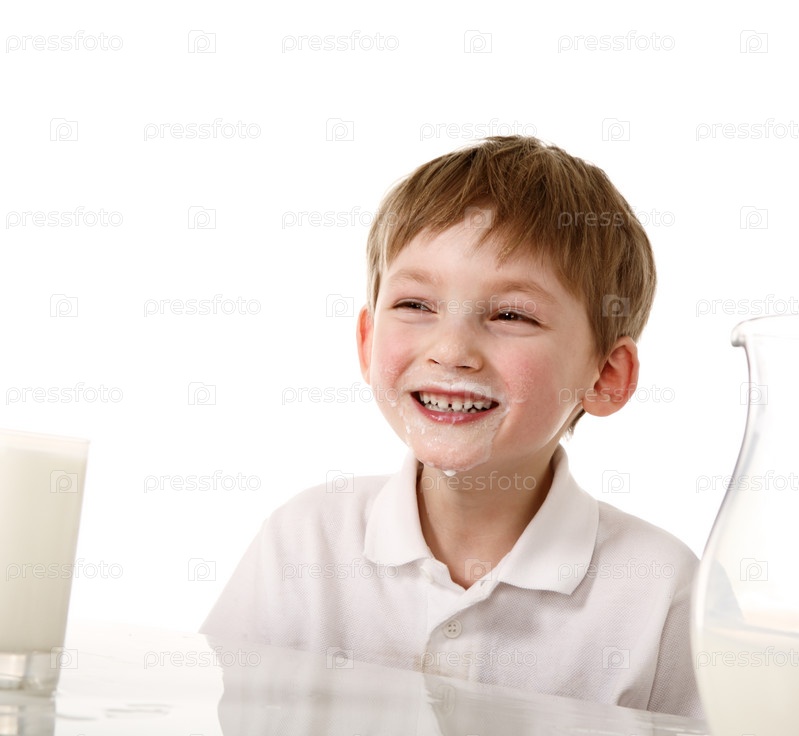 Счастливый мальчик с молоком