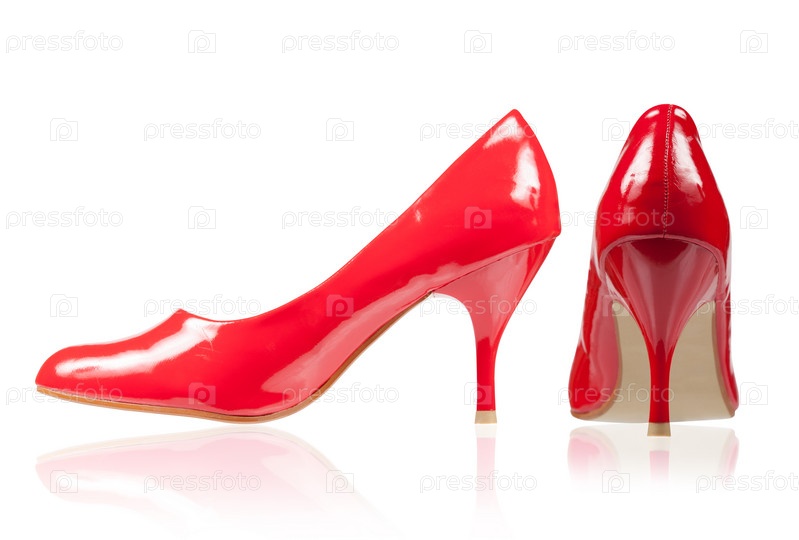 Красные туфли на тонком каблуке. Вид сбоку и сзади