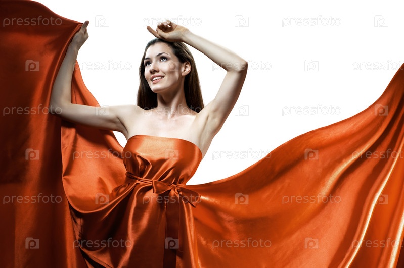 Красивая молодая женщина в красном длинном платье