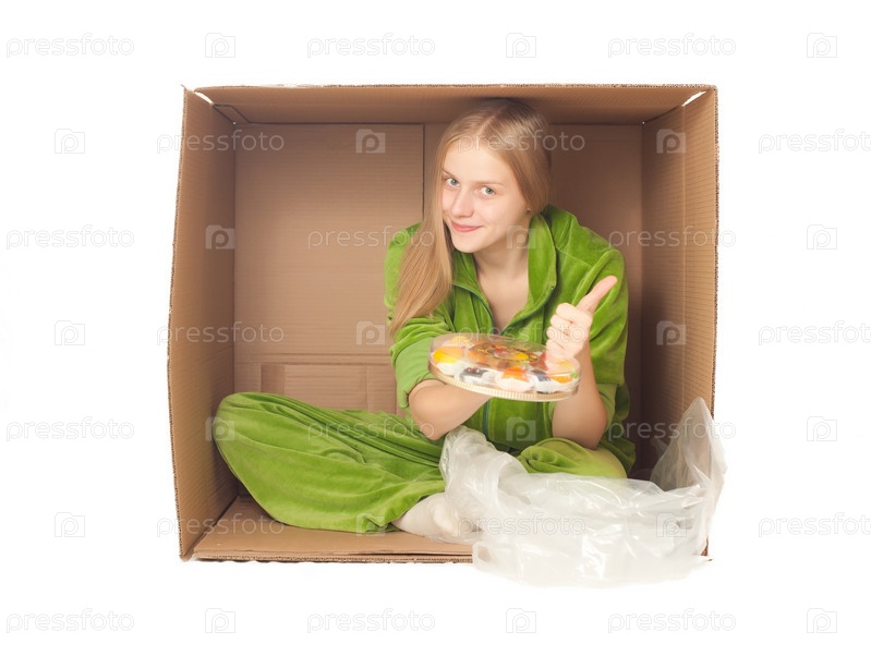 Девушка в картонной коробке