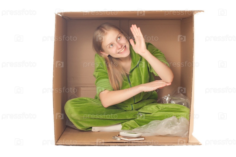 Девушка в картонной коробке