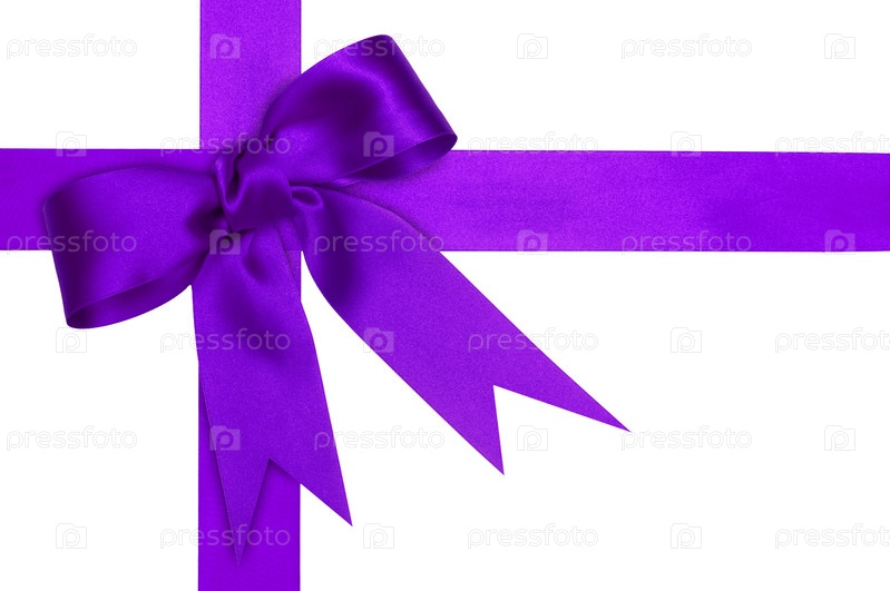 Фиолетовая шелковая лента на белом фоне