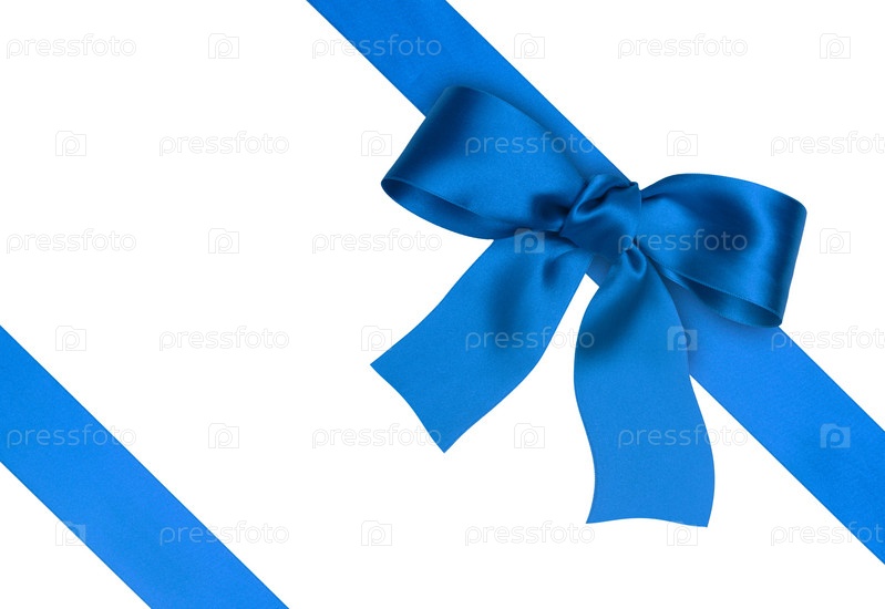 Синяя шелковая лента на белом фоне