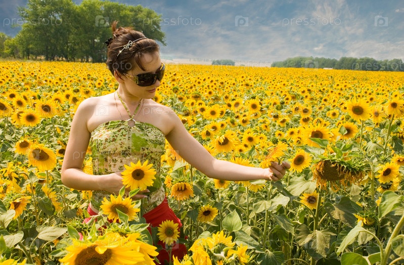 Девушка в поле подсолнухов