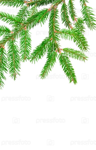 Ветка пихты на белом фоне