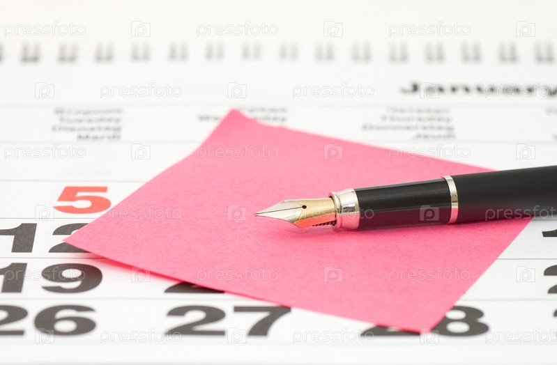 Стикер и ручка, лежащие на листке отрывного календаря