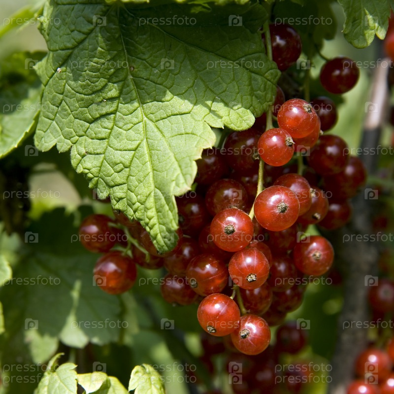 Гроздь красной смородины на кусте