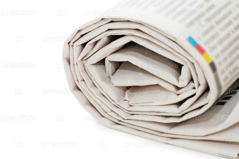 Газеты, свернутые трубочкой на белом фоне