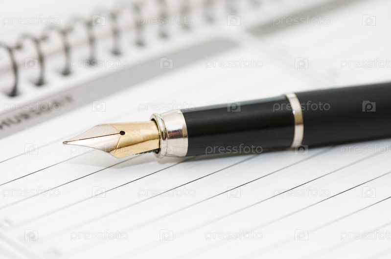 Чернильная ручка, лежащая на блокноте