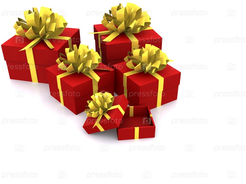 Красные подарочные коробки на белом фоне