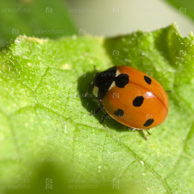 Божья коровка на зеленом листе