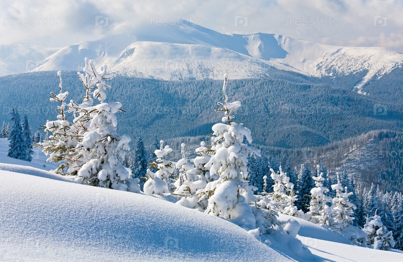 Заснеженные ели на склоне гор (Карпаты, Украина)