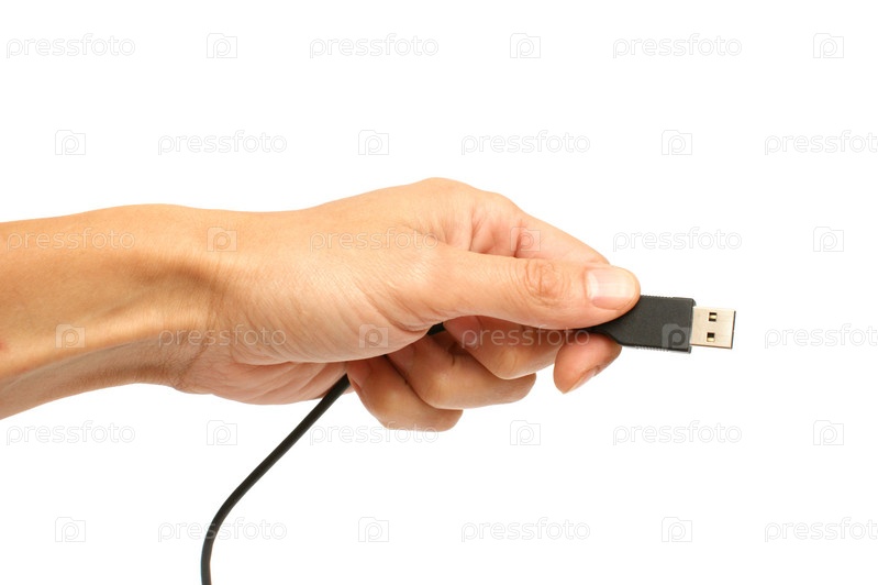 Мужская рука с кабелем USB