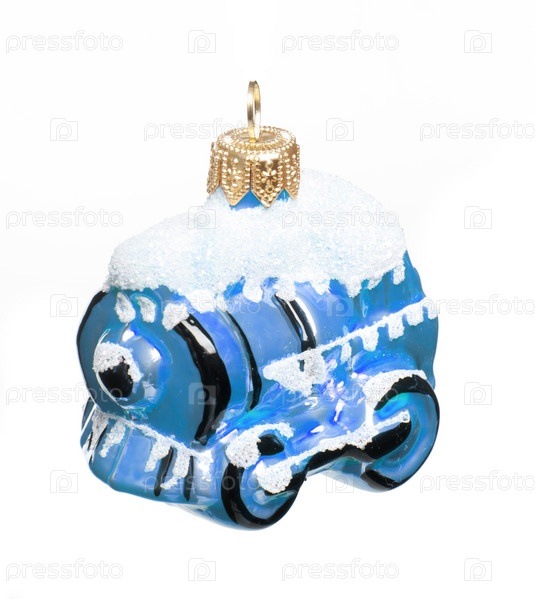 Голубая новогодняя игрушка на белом фоне