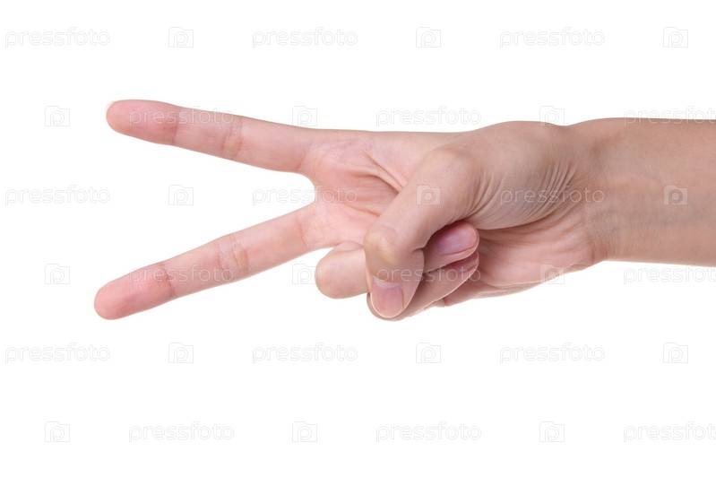Женская рука показывает два пальца на белом фоне