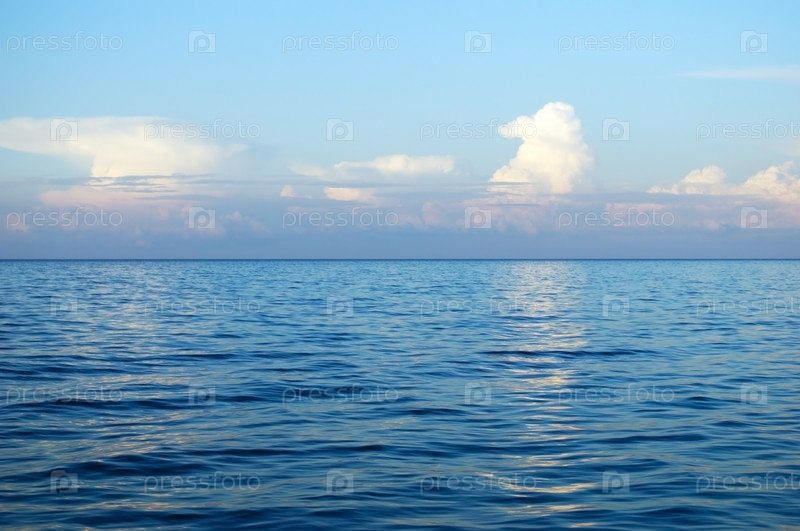 Штиль на море на фоне голубого неба