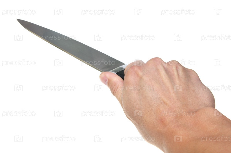 Острый нож в руке на белом фоне