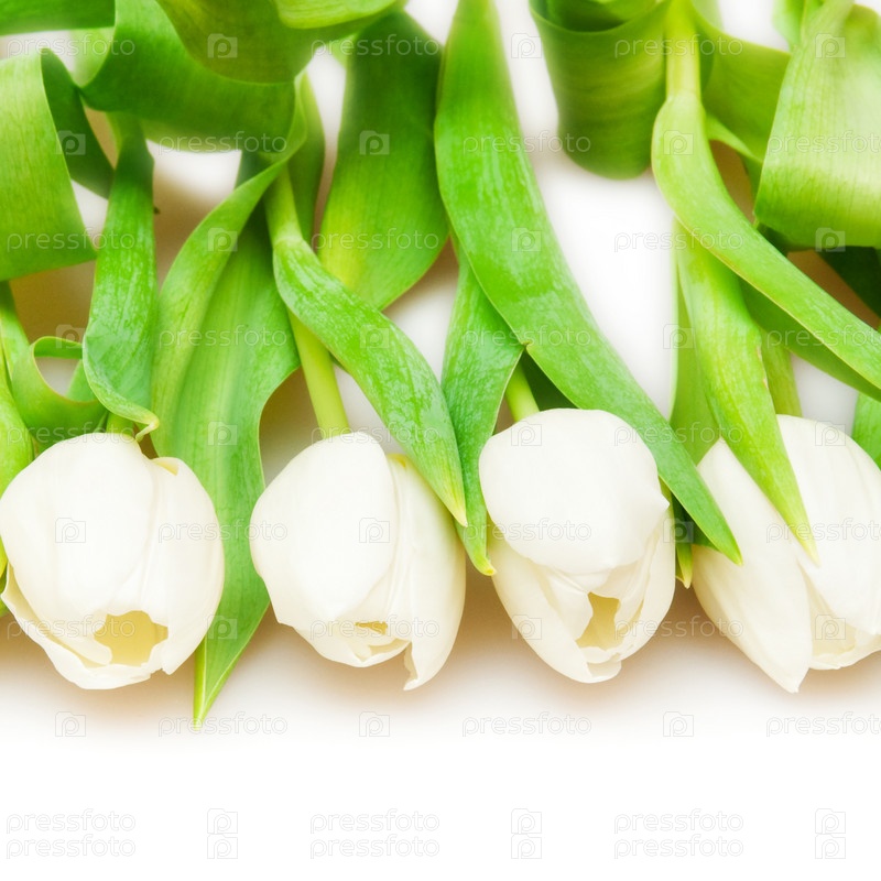 Красивые белые тюльпаны на белом фоне