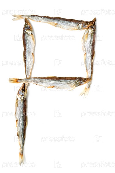 Большая буква 'P', выложенная из рыбы
