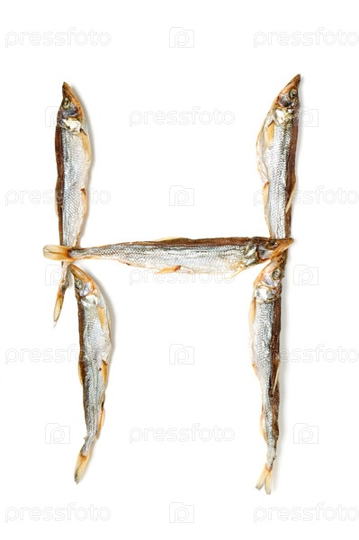 Большая буква 'H', выложенная из рыбы