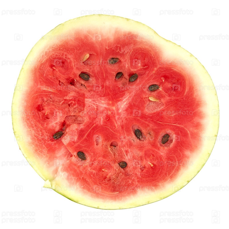 Спелый арбуз крупным планом на белом фоне