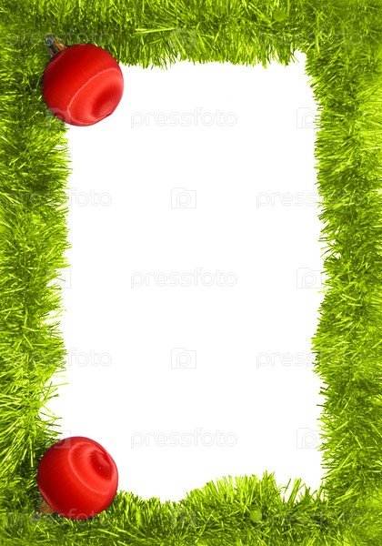 Новогодний шаблон с зеленой мишурой и елочными шарами