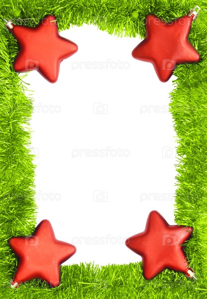 Новогодний шаблон с зеленой мишурой и красными звездами
