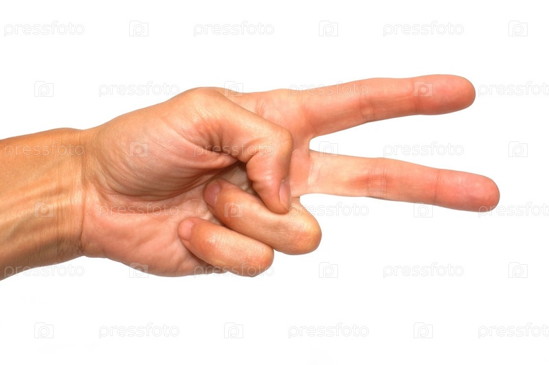 Мужская рука показывает знак "Победа"