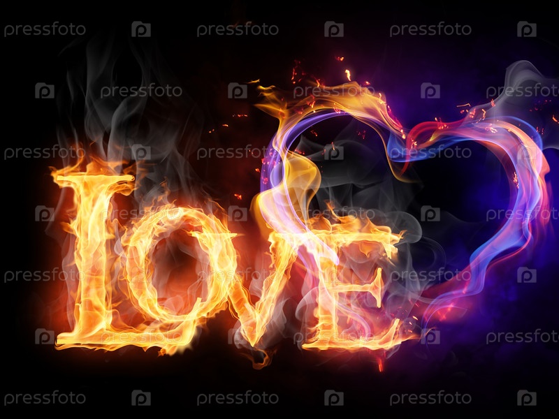 Пламенная надпись 'Love' на черном фоне