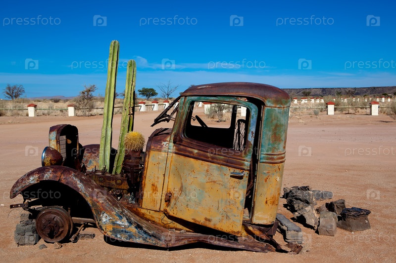 Старый автомобиль с кактусом
