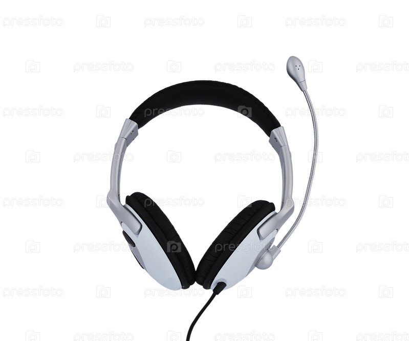 Наушники с микрофоном на белом фоне
