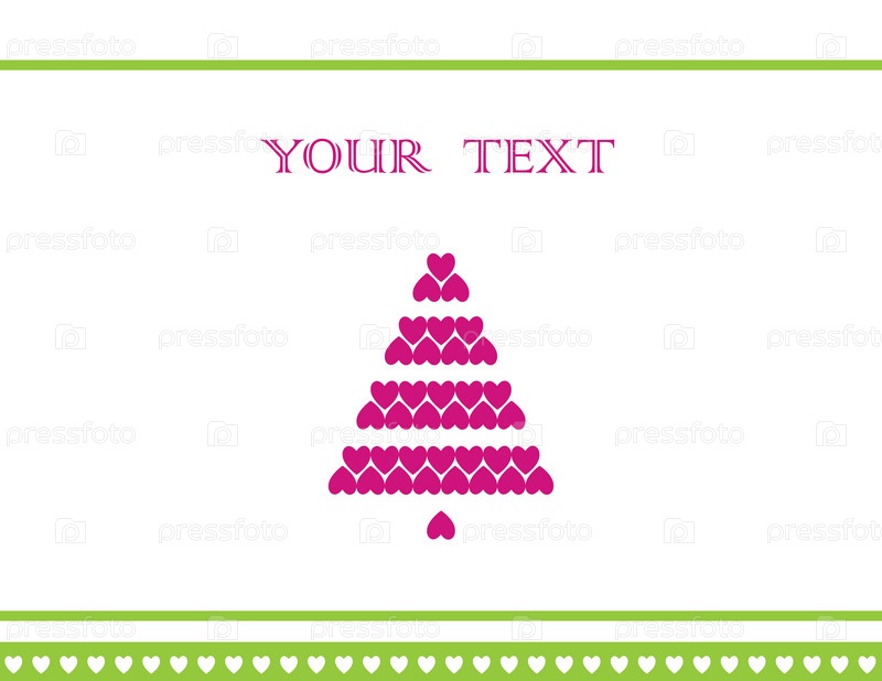 Новогодняя открытка с елкой из розовых сердечек