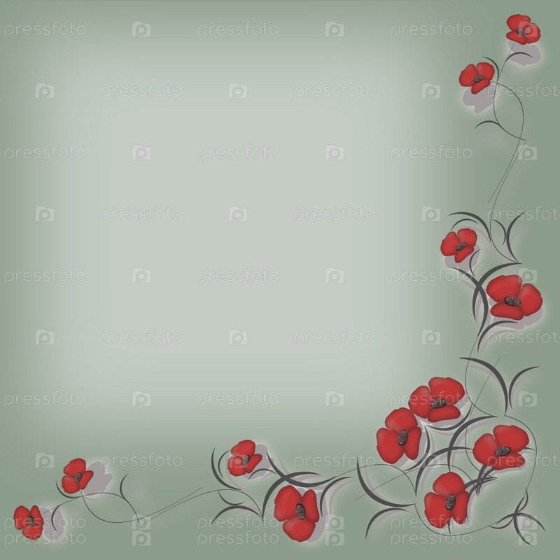Нарисованные цветы на светло-зеленом фоне