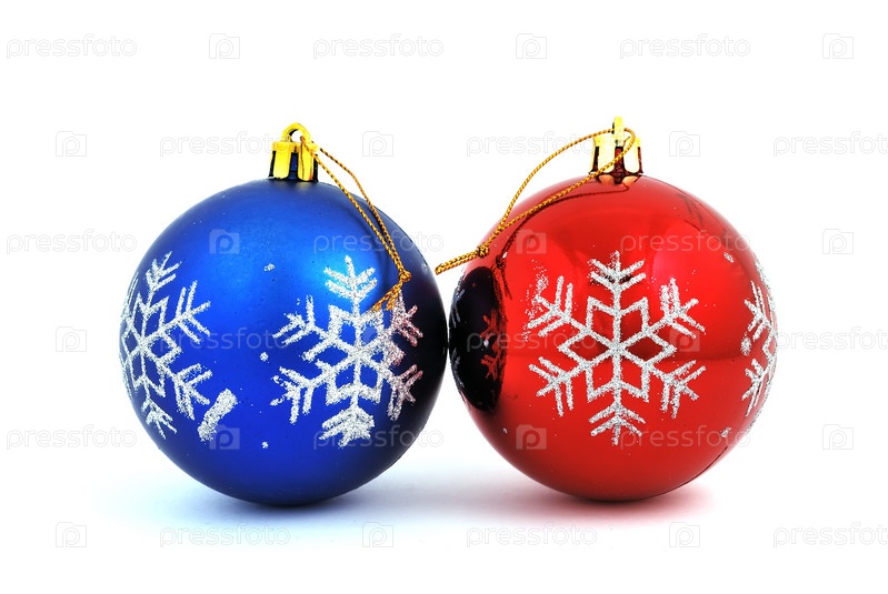 Два новогодних шарика на белом фоне