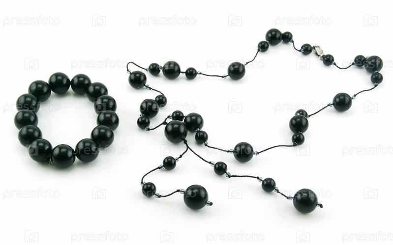 Черный перламутровый браслет и ожерелье изолированы на белом фоне