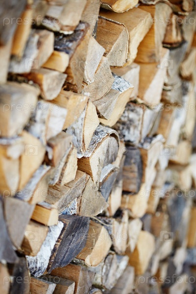 Поленница из березовых дров в качестве фона