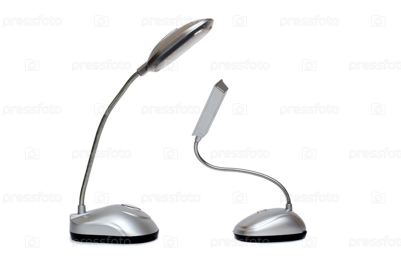 Две настольные серые металлические лампы