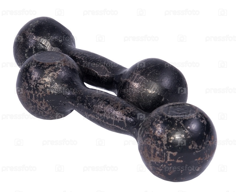 Черные гантели на белом фоне