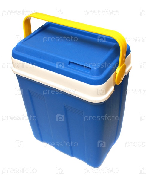 Синий пластиковый контейнер на белом фоне