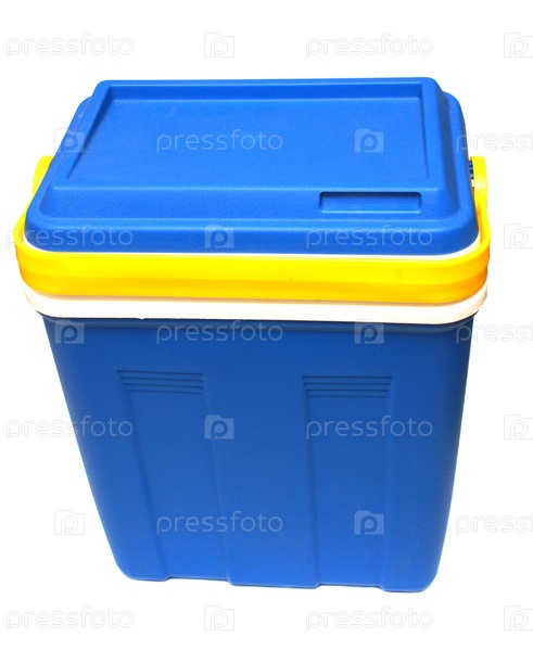 Синий пластиковый контейнер на белом фоне