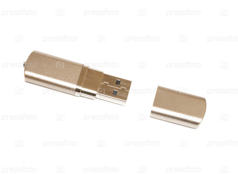 Металлическая флэшка на белом фоне